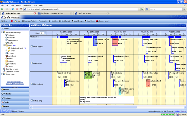 Ähnlich wie Zarafa stellt Zimbra eine Weboberfläche zur Verfügung die stark an Outlook erinnert, es nutzt dabei die Möglichkeiten moderner Webbrowser hervorragend aus, benötigt aber auch mehr Ressourcen auf dem Server. Es bietet alle gängigen Schnittstellen und kann sogar Telefondienste integrieren.